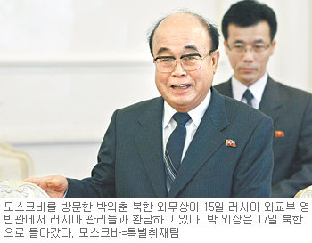박 외상을 수행하던 한 북한 관리는 외신 기자들의 접근을 막으며 “외상 동무가 ‘기자들의 질문을 받지 않겠다’고 미리 말했다”고 전했다. 그는 “러시아와는 잘됐다. 남북관계 악화와 6자회담에 대해서는 말할 입장이 아니다”라고 말했다.