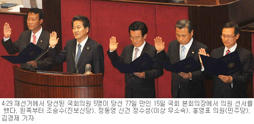 이날 오랜만에 문이 열린 본회의장에서는 여야 의원들의 고성이 다시 오갔다. 18대 국회에서 처음으로 본회의장 단상에 선 정동영 의원이 인사말을 하던 도중 “용산 참사 유가족 의 눈물을 닦아주는 것이 정치이며 정치적 파국을 몰고 올 언론법은 처리하지 않는 것이 정치라고 생각한다”면서 정부 여당을 비난하자 한나라당 의원들은 “그만해”라고 소리 지르며 반발했다. 민주당 의원들은 이에 “조용하라”며 맞고함을 쳤다.