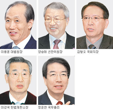 헌법재판소는 국민의 기본권을 보장하고 헌법 이념과 가치를 지켜 사회를 통합해야 합니다. 맡은 바 임무를 다해 국민에게서 신뢰와 사랑을 받는 한 해가 되게 하겠습니다. 사회의 이념 대립과 갈등에서 비롯한 정치 사회적 문제들이 헌법재판소로 집중되는 경향은 헌법재판소의 사명과 책임을 더 무겁게 합니다. 정운찬 국무총리 “세종시 문제 조속히 매듭”