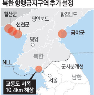 북한은 당초 지난달 31일부터 1일까지 이들 지역을 항행금지구역으로 선포했으나 31일 오전에 하루 더 연장한 것으로 전해졌다. 군 관계자는 “현재까지 북한이 이 지역에서 사격을 한 정황은 포착되지 않았다”며 “5곳 모두 북한 지역이지만 면밀히 감시하며 경계태세를 늦추지 않고 있다”고 말했다.