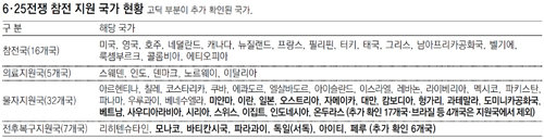 이번 연구에서 참전국과 의료지원국 수에는 변화가 없었지만 물자지원국의 경우 오스트리아와 베트남, 이집트 등 17개국이 새로 추가됐다. 기존에 물자지원국으로 분류됐던 브라질과 볼리비아 등 4개국은 관련 기록이 확인되지 않아 제외됐다.