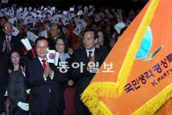 당 창당대회를 열고 공식 출범했다. 박세일 한반도선진화재단 이사장(앞줄 왼쪽)이 당