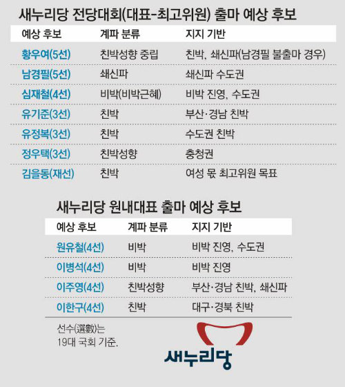 沈-黃, 금명 전대 출마 선언… 쇄신파 남경필도 저울질