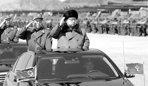 추대된 김정은이 앞서 3월 북한군 전선대연합부대 장거리포병부대를 사열하는 모습. 사진 출처 노동신문