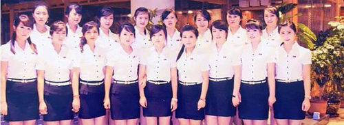 중국 저장 성 닝보의 북한식당인 ‘류경식당’에서 근무하다 탈출해 지난달 한국에 들어온 여종업원들이 동료들과 함께 찍은 사진. 노동당 7차 당 대회 취재차 평양을 방문한 CNN 취재진은 취재 마지막 날 한국에 도착한 여종업원 3명의 가족들을 북한 당국의 허락을 얻어 만났다. 이들은 자신의 가족이 납치됐다고 주장하며 이 사진을 보여줬다.