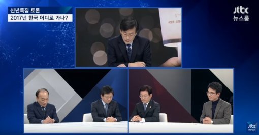 지난 2일 방송한 JTBC ‘뉴스룸-신년특집 토론 대한민국은 어디로 가는가’에서는 전원책 변호사, 개혁보수신당(가칭) 유승민 의원, 이재명 성남시장, 유시민 작가를 초대해 토론을 했다.