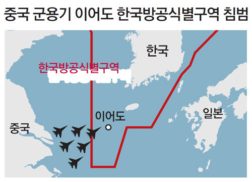 군 당국에 따르면 중국 군용기는 이날 오전 10시부터 오후 3시까지 제주도 남쪽 이어도 인근의 KADIZ를 침범했다. 이에 대구 공군기지의 F-15K를 비롯한 한국 전투기 10여 대가 긴급 발진했다고 군은 전했다. 중국 군용기들은 한국 공군 전투기들이 발진한 뒤에도 KADIZ를 수차례 넘나들며 비행한 것으로 알려졌다. 일본 NHK도 이날 중국 폭격기 등 군용기 8대가 대한해협 동수도(일본명 쓰시마 해협) 상공을 통과해 동중국해와 동해 사이를 비행하는 것을 일본 항공자위대가 긴급 발진해 확인했다고 보도했다. 중국 군용기는 훙(轟·H)-6 폭격기 6대와 윈(運·Y)-8 조기경보기 1대, 윈-9 정찰기 1대 등 8대였고, 영공 침범은 없었다고 NHK는 전했다. 군 관계자는 “과거에도 중국 군용기가 KADIZ를 침범했지만 이처럼 대규모로 오랜 시간 침범한 것은 이례적 상황”이라고 했다.