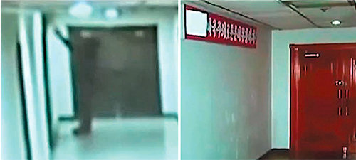 양각도 호텔의 폐쇄회로(CC)TV 화면(왼쪽 사진). 북한 측은 미국 대학생 오토 웜비어가 그해 1월 1일 새벽 호텔에서