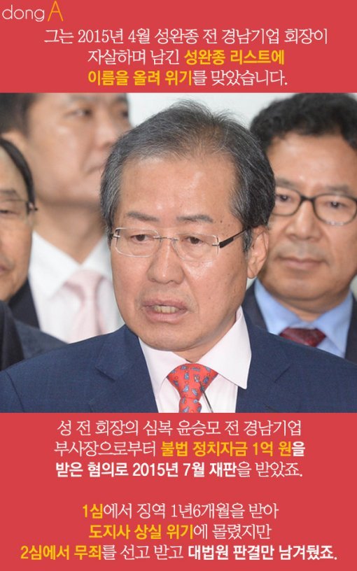 #. 그는 2015년 4월 성완종 전 경남기업 회장이 자살하며 남긴 ‘성완종 리스트’에 이름을 올려 위기를 맞았습니다. 성 전 회장의 심복 윤승모 전 경남기업 부사장으로부터 불법 정치자금 1억 원을 받은 혐의로 2015년 7월 재판을 받았죠. 1심에서 징역 1년6개월을 받아 도지사 상실 위기에 몰렸지만 2심에서 무죄를 선고 받고 대법원 판결만 남겨뒀죠.