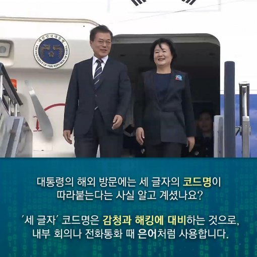 #2. 대통령의 해외 방문에는 세 글자의 코드명이 따라붙는다는 사실 알고 계셨나요? ‘세 글자’ 코드명은 감청과 해킹에 대비하는 것. 내부 회의나 전화통화 때 은어처럼 사용합니다.
