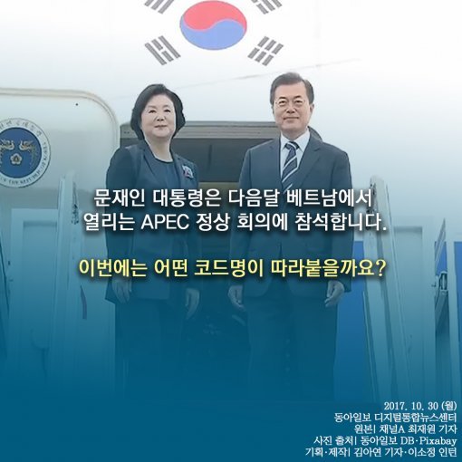 #9. 문재인 대통령은 다음달 베트남에서 열리는 APEC 정상 회의에 참석합니다. 이번에는 어떤 코드명이 따라붙을까요?