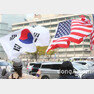 도널드 트럼프 미 대통령이 방한한 7일 오후 서울 세종문화회관 앞에서 미 대통령 방문을 환영하는 인파들로 북적이고 있다.