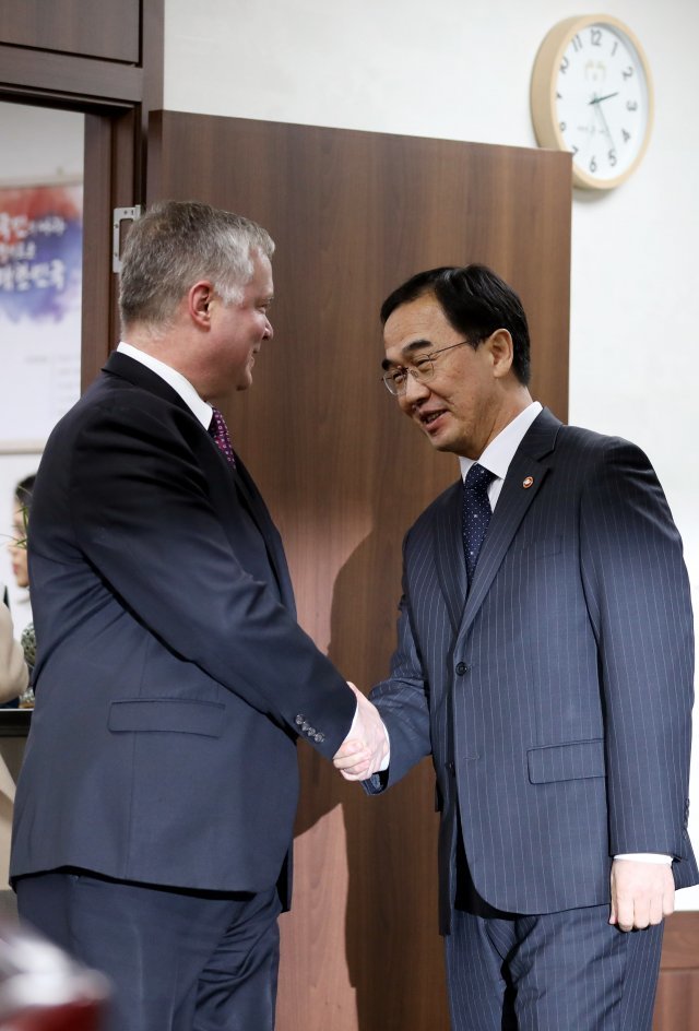 조명균 통일부 장관은 30일 스티븐 비건 미국 국무부 대북정책 특별대표를 만나 “지금 현 시점이 대단히 중요한 시점이라고 생각한다”고 강조했다.