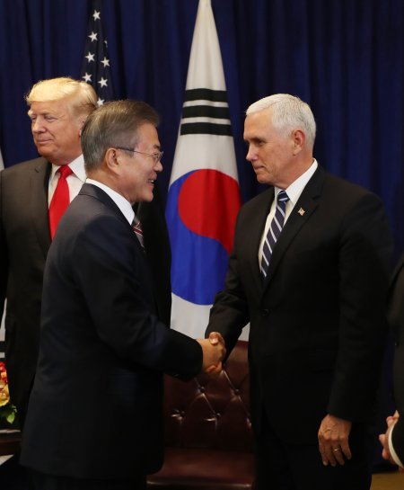 문 대통령과 펜스 부통령은 지난 2월 평창동계올림픽 기간 접견한 후 9개월 만에 얼굴을 마주하게 됐다.