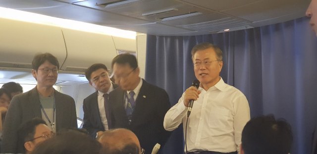 문재인 대통령이 한국시간으로 2일 오전 아르헨티나 부에노스아이레스에서 열린 G20 정상회의를 마치고 뉴질랜드 오클랜드로 향하는 공군 1호기 내에서 출입기자들과 만나 기자 간담회를 진행했다. 아래는 문 대통령과 기자단과의 일문일답.
