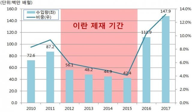 이란산 원유 수입 현황. (산업부 제공) © News1