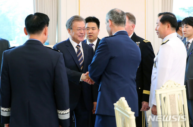 문 대통령은 이날 한·미 군 지휘부를 청와대로 초청해 오찬 간담회를 하는 자리에서 “양국은 긴밀한 공조와 협의 속에 한 목소리로, 또 차분하고 절제된 목소리를 냄으로서 북한이 새롭게 추가적인 도발을 하지 않는 한 대화의 모멘텀을 유지해 나갈 수 있게 됐다”며 “함께 긴밀한 공조를 해 주신 우리 양군의 지휘부 여러분께 감사를 드리고 싶다”고 치하했다.