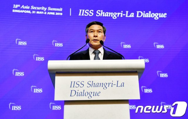 다만 정 장관은 북한이 지난달 4일과 9일 쏜 이른바 ‘북한판 이스칸데르’ 미사일을 탄도미사일로 보느냐는 질문에 대해선 “분석 중”이라는 기존 입장을 유지했다. 아직 분석 중인 만큼 탄도미사일로 규정하기엔 이르다는 것이다. 국방부 관계자는 “이는 한미의 공식입장”이라고 말했다. 그러나 앞서 이와야 다케 방위상은 이날 아시아안보회의 기조연설에서 “미국과 일본은 같은 입장이다. 북한이 쏜 미사일은 단거리 탄도미사일이다”라고 강조했다. 이를 두고 한국과 일본이 미국의 입장을 서로에게 유리한 방향으로 자의적으로 해석해 발표하고 있다는 지적이 나왔다. 이에 정 장관은 “각자 자국 입장에서 의견을 표명할 수 있겠지만 한미의 공식 입장은 기존에 밝힌 그대로다”라고 강조했다. 정 장관은 패트릭 섀너핸 미국 국방장관 대행이 북한의 미사일 도발에 대해 지난달 29일(현지시각) “유엔 안전보장이사회 결의 위반”이라며 사실상 이 미사일을 탄도미사일로 규정한 것에 대해선 “추후 만나면 정확한 의미를 물어보겠다”고 답했다.