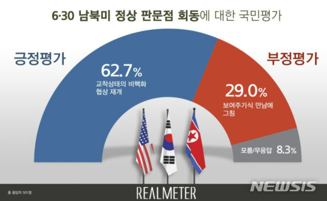 부정평가의 경우 자유한국당 지지층과 보수층에서 집중됐다. 최소 60%에서 최대 80% 이상이 부정적으로 평가했다. 한국당 지지층(긍정 9.8%·부정 83.2%), 보수층(긍정 37.5%·부정 58.5%)에서 부정평가 비율이 더 높게 나타났다.