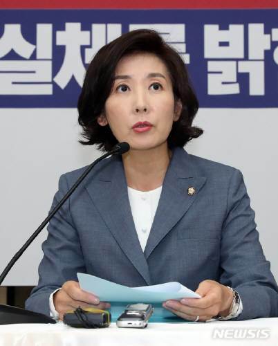 3일 오후 서울 여의도 국회에서 열릴 자유한국당 ‘조국 후보자의 거짓과 선동’ 대국민 고발 언론간담회에서 나경원 원내대표가 발언하고 있다. 뉴시스