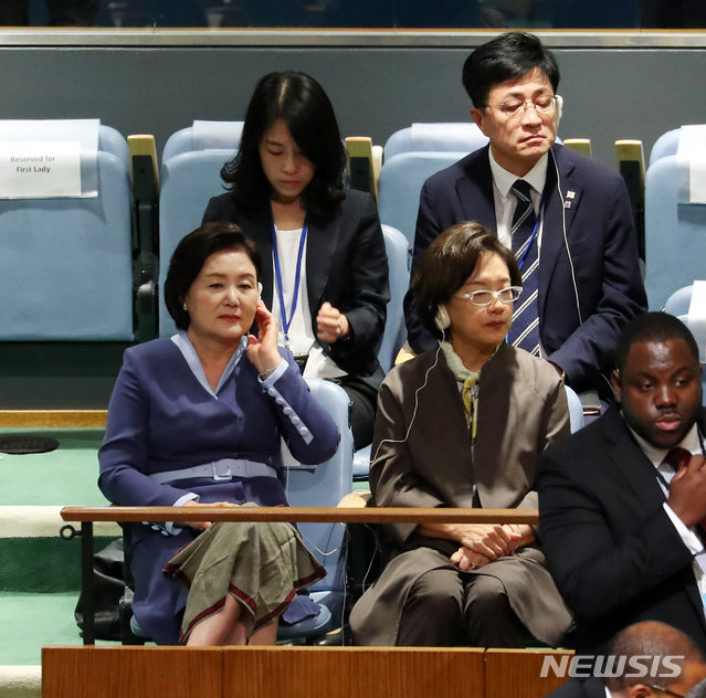 문재인 대통령과 함께 유엔총회 참석 일정을 소화하고 있는 부인 김정숙 여사는 24일(현지시각) “모든 사람이 존엄하게 살아가는 지구공동체의 내일을 희망한다”고 말했다.