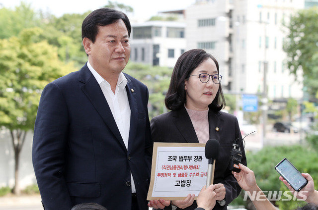 김현아·이은권 한국당 의원은 이날 오후 3시께 대검찰청에 조 장권을 직권남용권리행사방해죄와 부정청탁 및 금품 등 수수의 금지에 관한 법률 위반 혐의로 고발장을 제출했다.