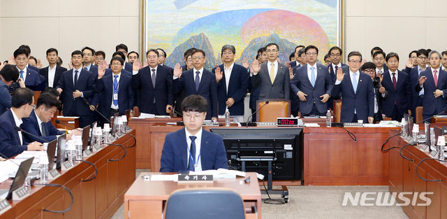 유의동 바른미래당 의원도 “오늘 국정감사가 시작됐는데 유례없는 일이 벌어지고 있다. 국감에 출석시킬 일반증인의 합의, 채택, 의결을 못한 것”이라며 “일반 증인이 있기 마련이고 다 부를 수 없으니 최소한의 증인을 출석시킨 게 관행이었다. 그런데 민주당은 조국과 관련이 있다고 비토를 놨다”고 지적했다.