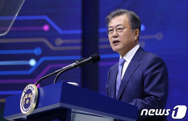 문재인 대통령이 지난 4월30일 오후 경기 화성 삼성전자 화성사업장에서 열린 ‘시스템반도체 비전 선포식’에서 연설을 하고 있다. (청와대 제공) 2019.4.30/뉴스1