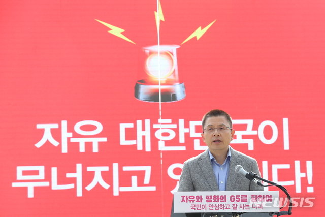 황 대표는 24일 국회 국기계양대 앞에 300인치 대형 스크린을 설치하고 ‘자유와 평화의 G5를 향하여’라는 주제로 민평론을 발표했다. 황 대표는 “문재인 정권의 외교안보와 대북정책은 총체적 실패작”이라며 “한미동맹과 국방력 강화를 통한 힘 있는 평화정책으로 북핵을 완전 폐기시키겠다”며 구체적 구상을 밝혔다.