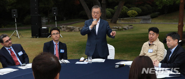 문 대통령은 이날 청와대 녹지원에서 주재한 출입기자단 간담회에서 ‘금강산 문제를 바라보는 대통령의 의견은 어떠하냐’라는 질문에 이렇게 답했다.