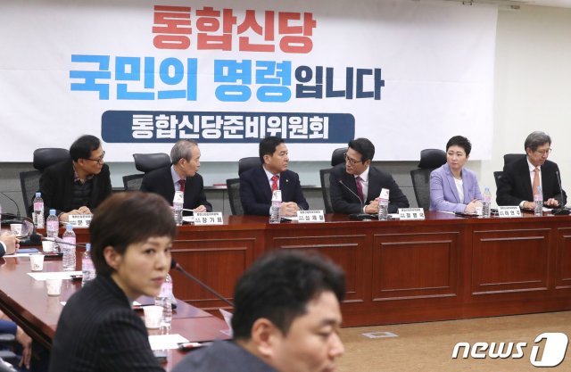 한국당은 이날 전국위원회를 열고 “대한민국 헌법, 자유민주주의와 시장경제를 지키려는 원칙을 가진 모든 정당·정치인·시민단체 등과의 통합을 추진한다”는 내용의 합당안을 의결했다. 이어 열린 통준위 회의에선 신당명은 ‘미래통합당’으로 결정하고 한국당 황교안 대표를 신당의 대표로 선관위에 등록하기로 했다. 신당 지도체제와 공천관리위원회 구성은 한국당 최고위원회 및 공관위를 기반으로 여기에 각각 2, 3명을 추가하기로 합의했다. 박형준 통준위원장은 “추가 최고위원 등은 지분 나누기 방식을 지양하고 함께 논의해 추천하기로 했다”고 설명했다.