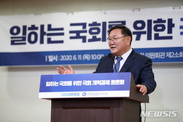 김태년 원내대표는 인사말에서 “일을 잘할 수밖에 없는 구조, 체계, 시스템을 갖추는 게 제일 중요하다”며 “결정의 속도를 늦추거나 결정을 못하게 하는 장애물들을 제거하는 게 국회 개혁의 핵심”이라고 밝혔다.