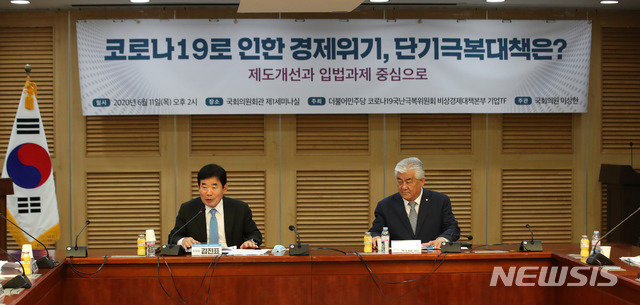 신종 코로나바이러스 감염증(코로나19)으로 위기를 겪고 있는 기업인들이 11일 더불어민주당 의원들을 찾아 와 위기 극복을 위한 규제 완화와 세제 지원 등을 요청했다.