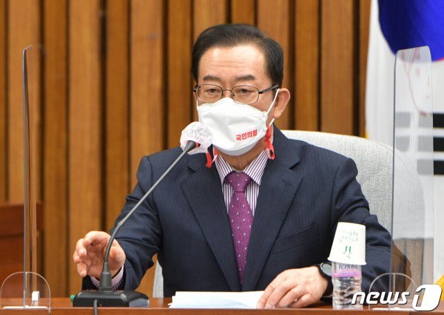 이종배 국민의힘 정책위의장이 지난 9일 서울 여의도 국회에서 열린 원내대책회의에서 모두발언을 하고 있다. 2021.3.9/뉴스1 © News1