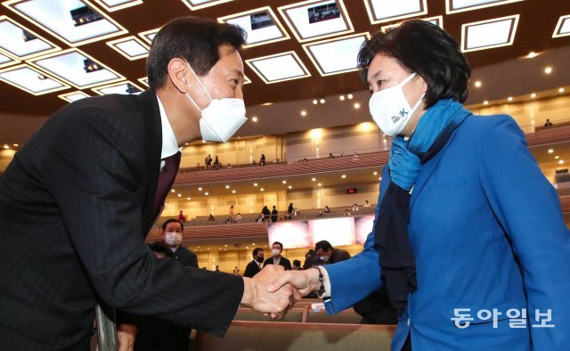 반면 오 후보는 선거 초반부터 일관되게 ”무능한 정권을 심판하기 위해 이번 선거에서 반드시 승리해야 한다“고 강조해왔다. 공식 선거운동 시작부터 ”박 후보가 시장이 되면 문재인 정부 부동산 정책을 그대로 따라갈 수밖에 없다“며 정권의 아킬레스건인 ‘부동산 정책 실패’를 집중적으로 파고들었다. 그러다 박 후보와 민주당의 ‘내곡동 의혹’ 공세가 이어지자 지난달 29일 첫 TV토론에선 ”시민을 속이는 거짓말“이라며 ”3명만 호랑이를 봤다고 하면 없는 호랑이도 있게 되는 ‘삼인성호’ 같다“며 방어에 나서고 있다.