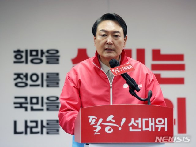 11일 강원도 선대위 출범식에 참석한 윤 후보는 정부의 신종 코로나바이러스 감염증 방역 정책과 검찰의 대장동 특혜 의혹 수사를 겨냥해 “도저히 더는 지켜볼 수 없다”며 “이건 국가가 아니다”라고 강도 높게 비판했다. 그는 “코로나19로 4000명이 사망했고 최근 두 달간 1000명이 사망했다. 50조 원 돈을 쓰고 병상 하나 제대로 만들지 못했다”고 지적했다. 대장동 수사에 대해서는 “국민들이 스트레스를 받는다. 우리가 이걸(정권을) 교체하지 않으면 국민들 정신건강이 심각하게 망가질 거라 생각한다”고 목소리를 높였다.
