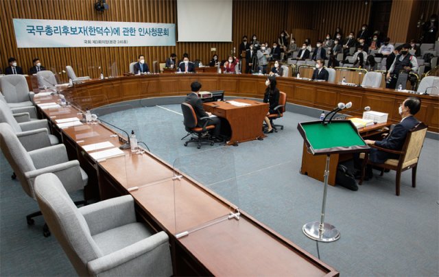 특히 국민의힘은 인사청문 국면의 시작인 한덕수 후보자의 청문회 진행은 물론이고 인준 투표까지 반드시 통과시킨다는 각오다. 국민의힘 관계자는 “첫 청문회부터 민주당에 휘둘릴 경우 이후 이어지는 국면에서 주도권을 빼앗길 우려가 있다”며 “한덕수 후보자의 경우 이미 앞서 공직을 맡으며 대부분의 의혹이 소명된 만큼 큰 무리 없이 통과될 것으로 기대하고 있다”고 말했다. 다만 25일 민주당과 정의당이 끝내 불참할 경우 국민의힘 위원들만 참석한 상황에서 인사청문회가 파행을 겪을 수 있다는 우려도 나온다.