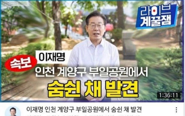 또 ‘숨쉰채 발견’은 지난 10일 이 후보가 ‘라이브 계꿀쨈, 속보 이재명 인천 계양구 부일공원에서 숨 쉰 채 발견’이라는 제목의 영상을 비판한 것이다.