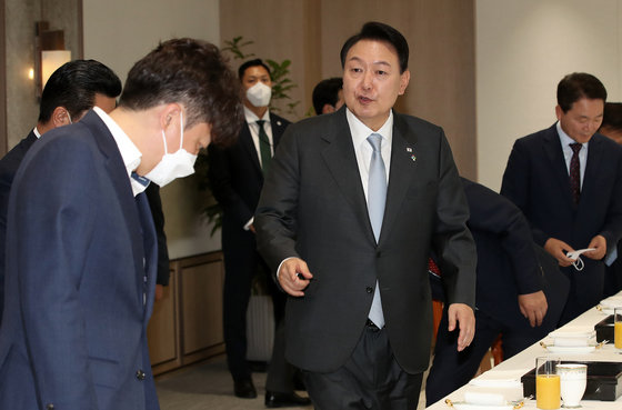 이날 윤 대통령과 당 지도부와의 오찬 간담회에서도 당내 권력 다툼 등 민감한 정치 현안 관련 언급은 일절 없었던 것으로 전해졌다. 이 대표는 오찬을 마친 뒤 국회로 돌아와 기자들에게 ”대통령 취임 한 달과 지도부 출범 1년이 겹치는 자리여서 그에 대한 환담이 많았다“며 ”화기애애한 분위기였다“고 말했다.