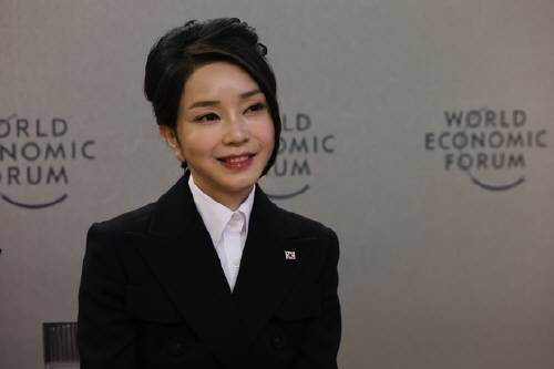 스위스 다보스에서 2023년 세계경제포럼(다보스포럼) 연차총회를 계기로 열린 ‘예술가 리더’ 행사에 초청을 받아 예술가들과 대화를 나누고 있다. 대통령실 제공