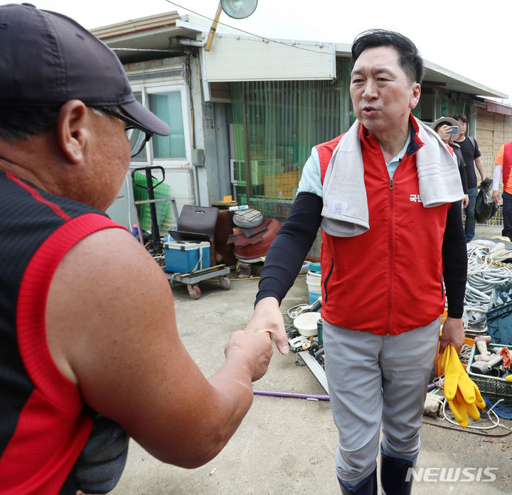 김 대표는 이날 오전 국회에서 열린 최고위원회의에서 “많은 국민께서 수해 복구에 도움을 주고 계신다. 국민의힘도 경북과 충북, 전북 등에 가서 피해 상황을 살피고 당원과 함께 미력하나마 복구를 돕고 있다”며 “어제는 (전북) 익산에 이어서 오늘은 오후에 저를 비롯한 당 지도부가 충남 청양에 가서 폐기물과 쓰레기를 정리하는 복구활동에 임할 예정”이라고 말했다.