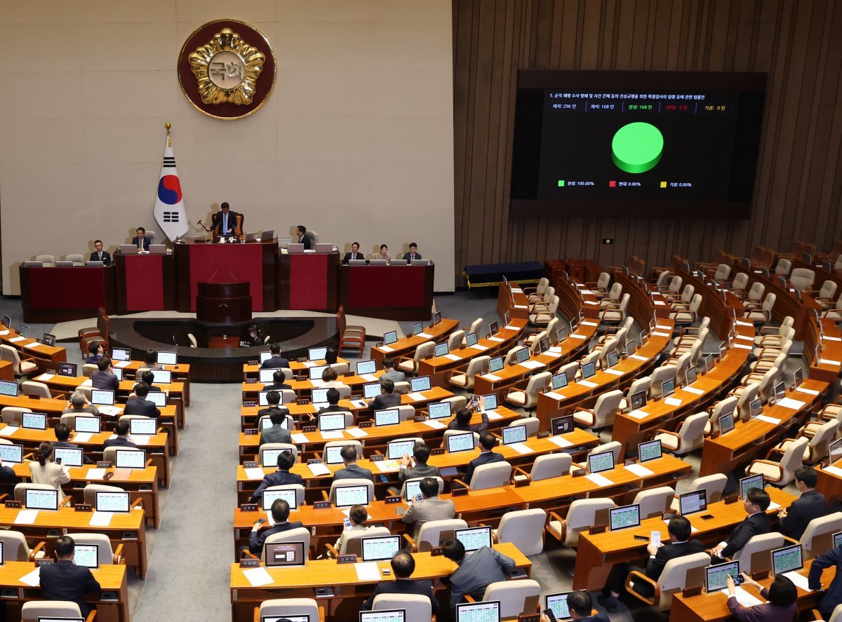 2일 서울 여의도 국회에서 열린 제414회국회(임시회) 제1차 본회의에서 ‘채상병특검법’(순직 해병수사 방해 및 사건 은폐 등의 진상규명을 위한 특별검사의 임명 등에 관한 법률안)이 야당 단독으로 통과되고 있다. 2024.5.2 뉴스1