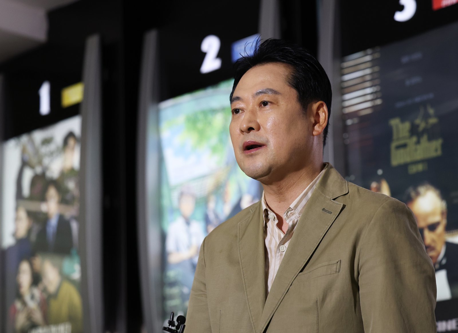 장동혁 국민의힘 대표가 7일 오후 서울 영등포구 롯데시네마 영등포점에서 영화 ‘건국전쟁2’ 관람을 앞두고 취재진의 질문에 답하고 있다. 2025.10.7/뉴스1