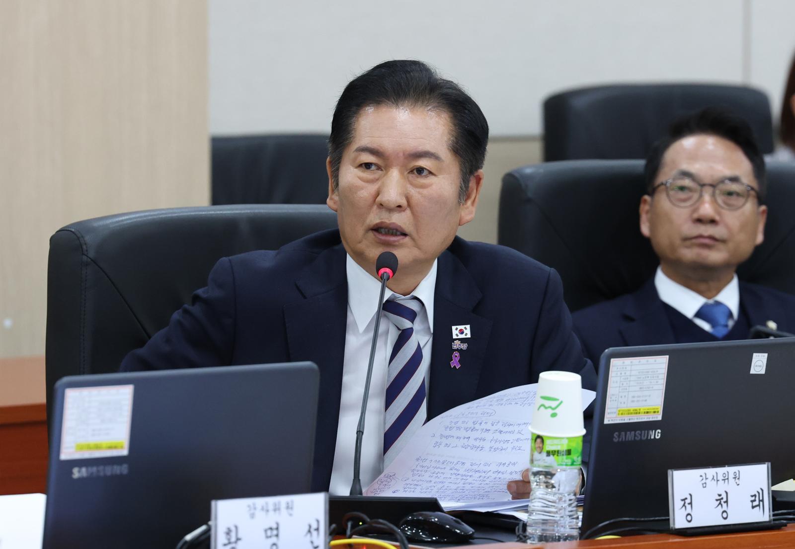 정청래 더불어민주당 의원이 21일 경기 용인시 육군지상작전사령부에서 열린 국회 국방위원회의 육군지상작전사령부에 대한 국정감사에서 질의를 하고 있다. 2025.10.21/뉴스1