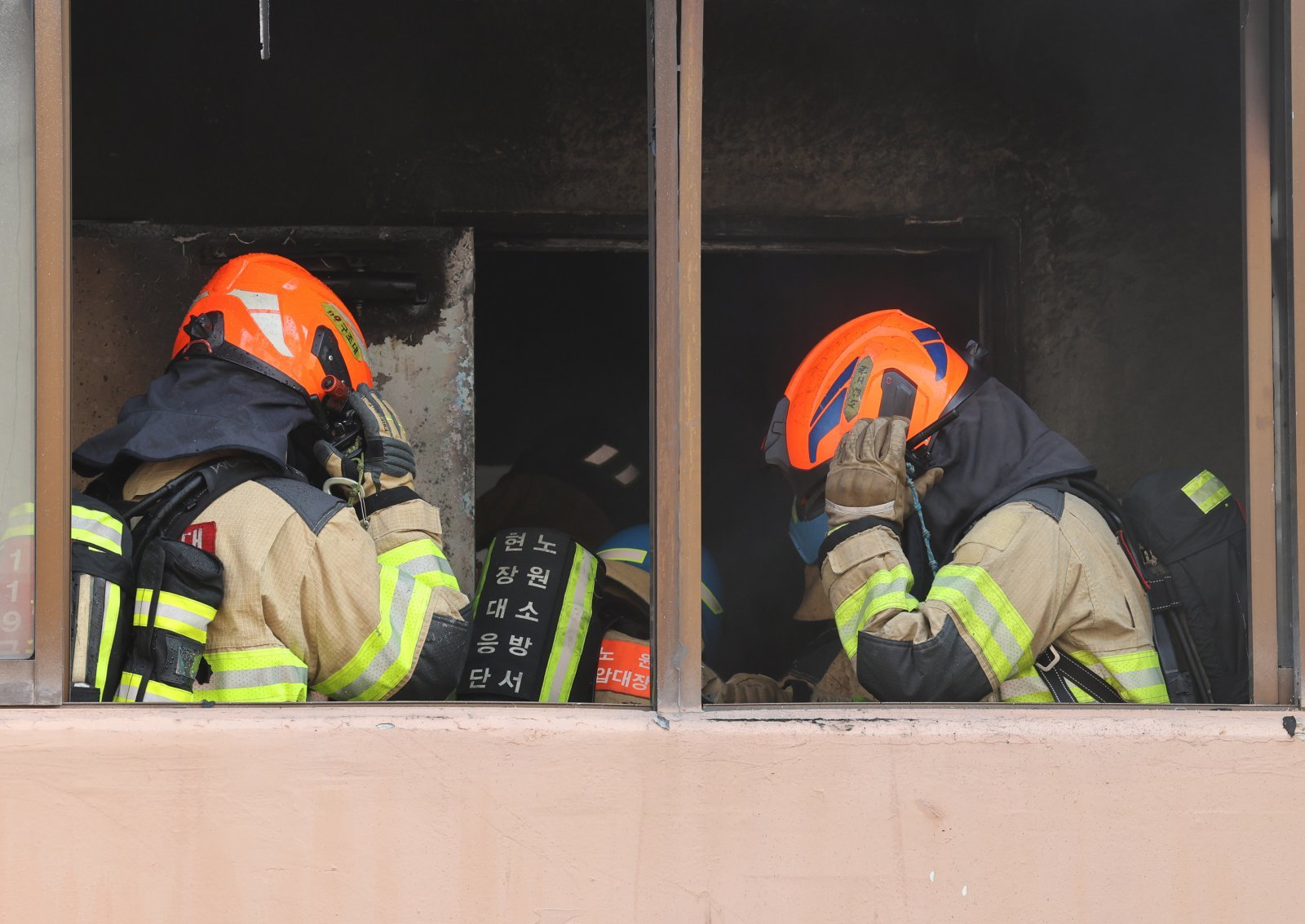 소방재난본부 소방관들이 1일 오후 노원구 상계 마들아파트 재건축 현장에서 실시된 2025 아파트 실물화재 재현실험 진화 작업을 하고 있다. 2025.10.01. 서울=뉴시스