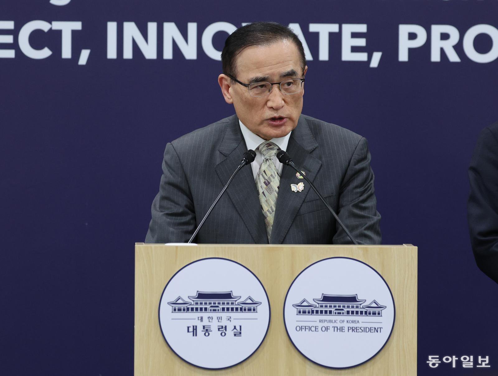 위성락 대통령실 국가안보실장이 29일 경북 경주 APEC 국제미디어센터에서 한미 정상회담 관련 브리핑을 하고 있다. 2025.10.29. 송은석 기자 silverstone@donga.com