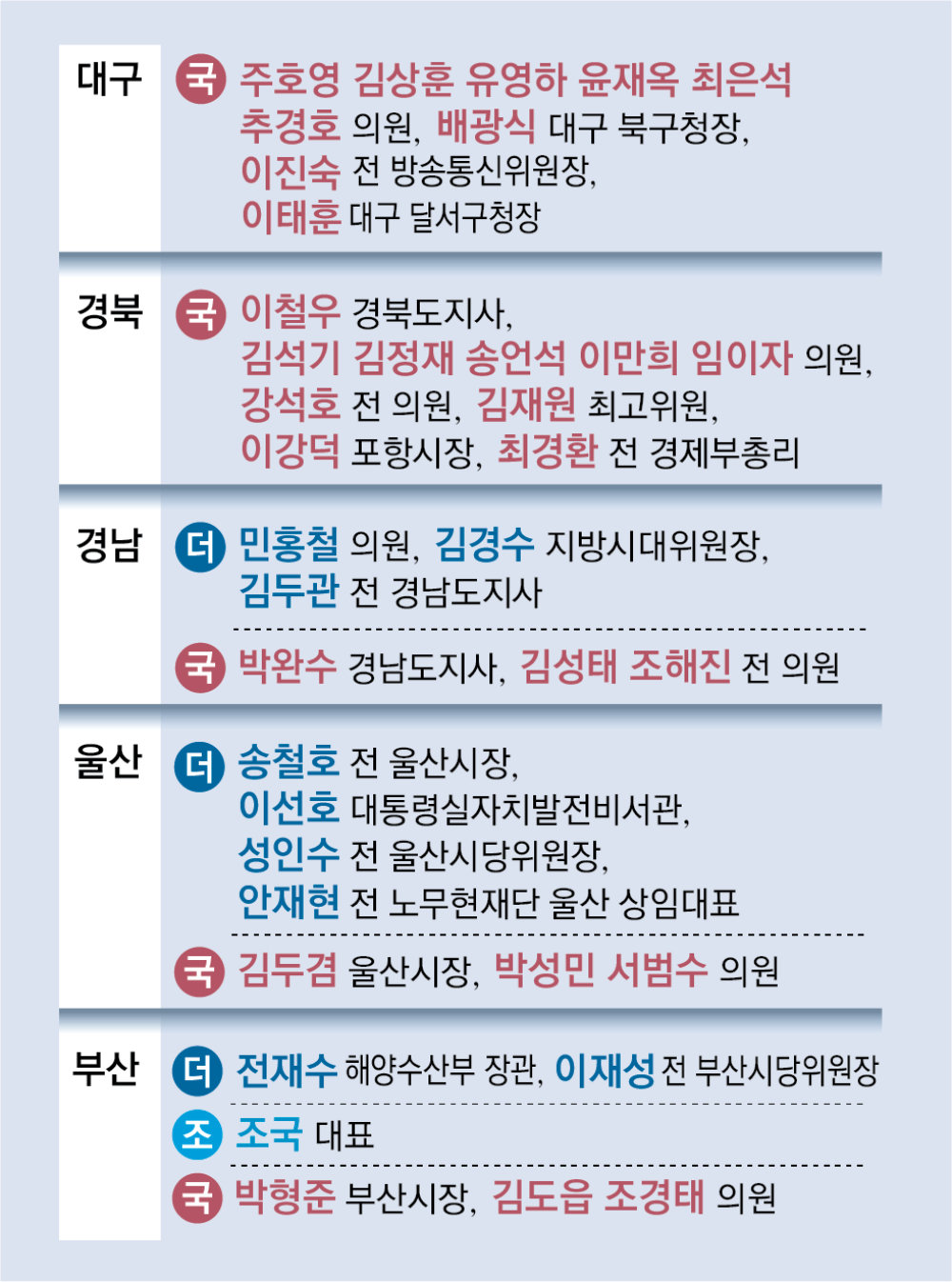 내년 지방선거를 앞두고 여야의 ‘텃밭’인 호남과 대구·경북(TK)에서는 치열한 내부 경쟁이 벌어지고 있다. 광주에서는 범여권 후보만 8명이 거론되고 있으며 현재 시장이 공석인 대구에서도 국민의힘 소속 후보 10여 명이 물망에 오르고 있다.