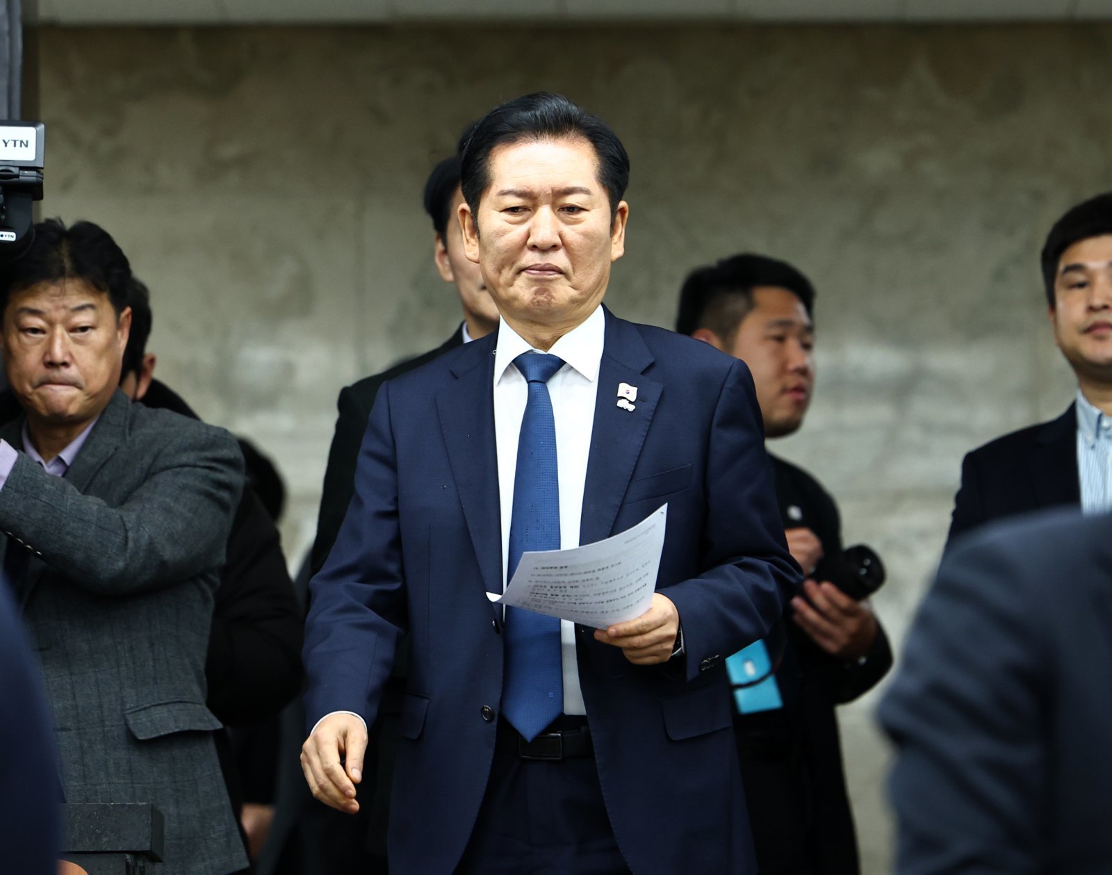 정청래 더불어민주당 대표가 27일 오후 서울 여의도 국회에서 열린 의원총회에서 입장하고 있다. 2025.11.27. [서울=뉴시스]