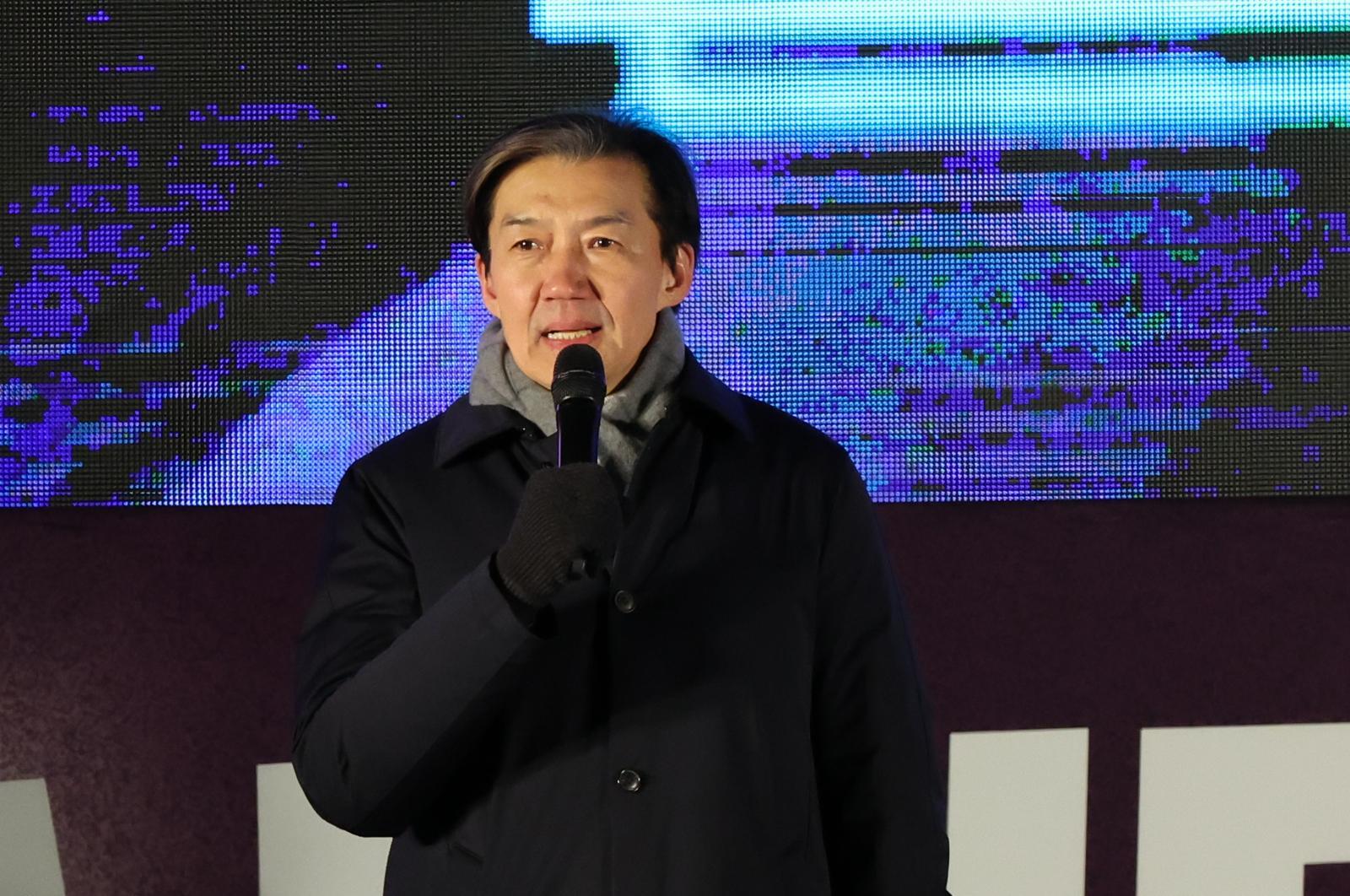 조국 조국혁신당 대표가 12·3 비상계엄 1년을 맞은 지난 3일 서울 여의도 국회 앞에서 열린 ‘12·3 내란외환 청산과 종식, 사회대개혁 시민대행진’에 참석해 발언하고 있다. 2025.12.3/뉴스1