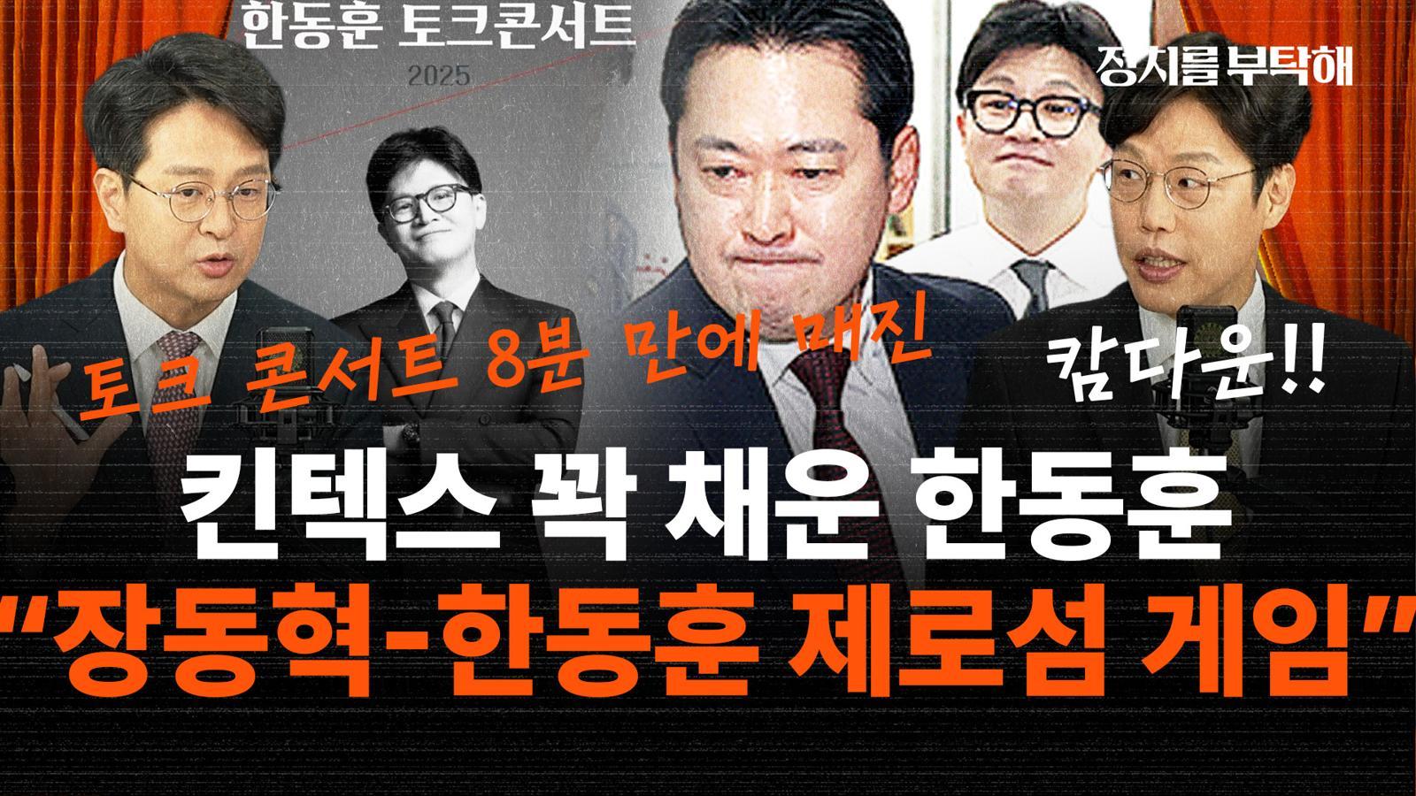 ▷ 권오혁: 알겠습니다. 장동혁 대표의 당 대표의 어쨌든 여러 가지 모습들과 대조되는 것이 또 한동훈 전 대표의 행보인데요. 한동훈 전 대표를 둘러싼 어떻게 보면 가족과 관련된 당원 게시판 논란에 대한 조사에 착수를 했지만 사실 뭐 정치적 행보는 여전히 꾸준히 잘 이어가고 있는 상황입니다. 21일에 이제 토크 콘서트도 지금 예정이 되어 있는데 예매가 8분 만에 매진이 됐다. 굉장히 어떻게 보면 팬덤들을 좀 보여줄 수 있는 측면이라고 보이는데 좀 아무래도 당연히 장 대표에 대한 그런 어떻게 보면 당내의 영향력이 줄어든다고 보면 사실 반대로 한동훈 전 대표에 대한 여러 가지 영향력이 커지는 약간 그렇게 좀 볼 수 있는 측면도 있지 않을까 싶은데.